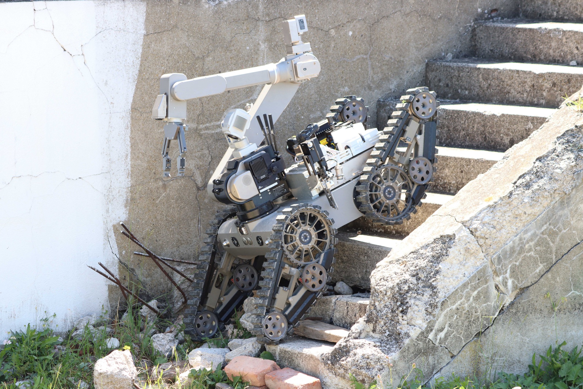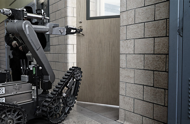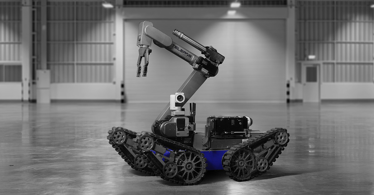 El telemax EVO cuenta con un diseño compacto y un manipulador de alcance extendido, proporcionando un rendimiento comprobado en entornos urbanos complejos. Diseñado para velocidad y movilidad, su sistema de tracción de 4 orugas permite superar fácilmente obstáculos, brechas e inclinaciones pronunciadas, con ruedas opcionales de acoplamiento rápido para mayor tracción. Su manipulador de 7 ejes con Control de Punto Central de Herramienta (Tool Center Point Control) incorpora una articulación telescópica, permitiendo alcanzar espacios confinados con alta precisión. Dispone de un amplio compartimento de carga y un sistema automático de intercambio de herramientas, facilitando el transporte de múltiples herramientas, disruptores o sensores sin necesidad de regresar a recargar. El radio IP Mesh integrado ofrece comunicaciones seguras, mientras que su cámara HD pan-tilt-zoom genera imágenes de alta definición con cuatro transmisiones de video simultáneas (QuadView).